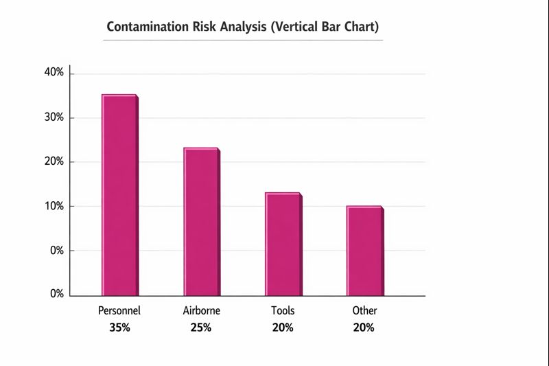 La contaminazione incrociata si verifica quando particelle, microbi o residui chimici vengono trasferiti da una superficie all'altra. In una camera bianca, anche i detriti microscopici possono compromettere processi sensibili. Le fonti includono: