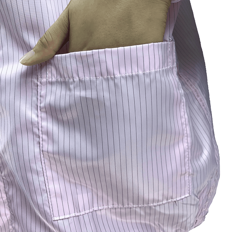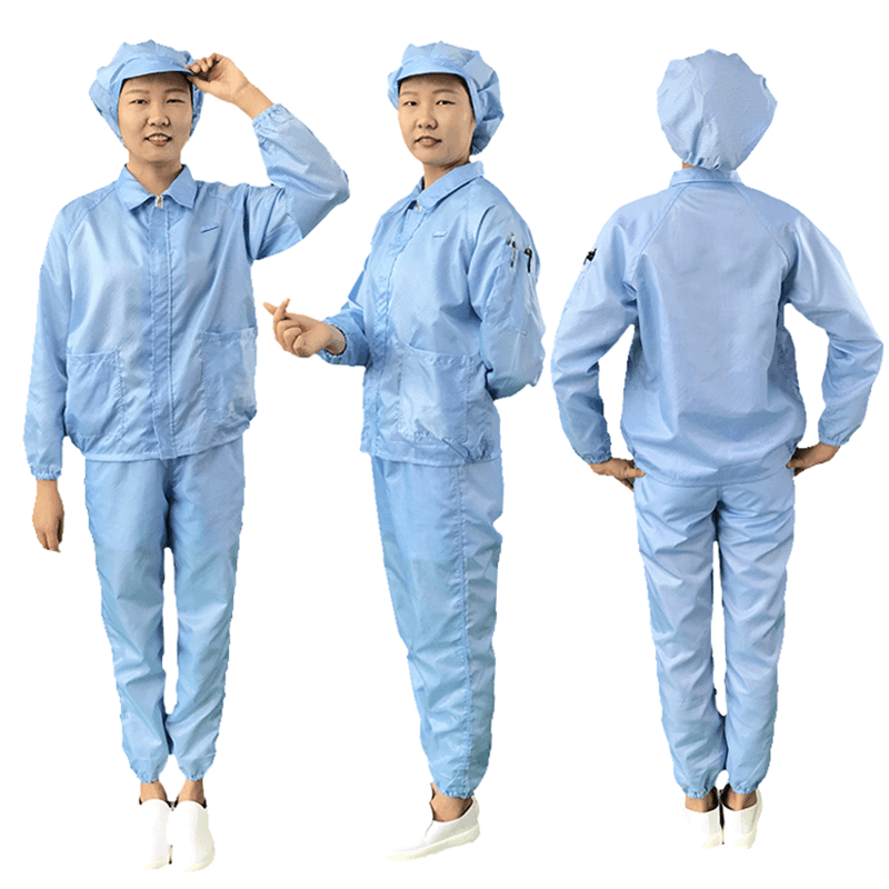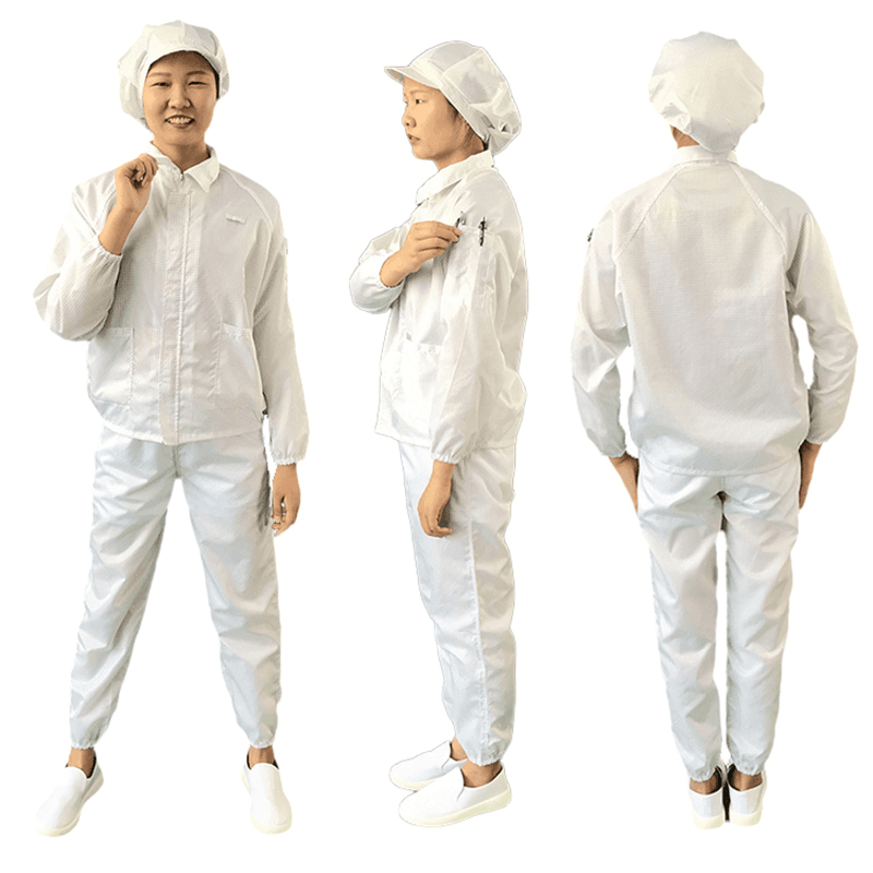 Le giacche e i pantaloni ESD sono progettati per fornire un'eccellente protezione da scarico elettrostatico (ESD). Sono collegati alla stazione di terra attraverso fili di bobine integrate per garantire che l'elettricità statica possa essere effettivamente guidata a terra e impedire all'elettricità statica di interferire con apparecchiature elettroniche sensibili. Questa funzione di schermatura elettrostatica è fondamentale per proteggere i dispositivi elettronici dagli effetti della scarica elettrostatica.