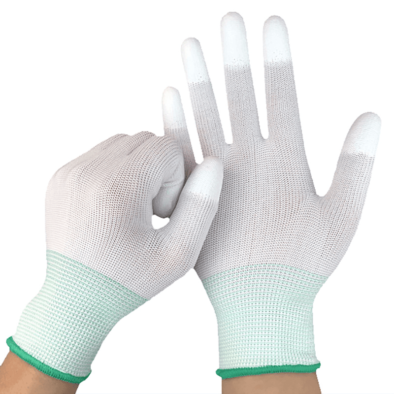I nostri guanti rivestiti di Nylon Finger PU sono intessuti con filato di nylon di alta qualità e filo conduttivo conduttivo in fibra di carbonio ad alte prestazioni. Questa combinazione non solo offre ai guanti resistenza all'usura estremamente elevata e durata, ma offre anche un'eccellente funzione antistatica. Le proprietà conduttive del filo conduttivo in fibra di carbonio possono effettivamente prevenire l'accumulo di elettricità statica ed evitare danni da elettricità statica a componenti sensibili come i circuiti di RAM e IC durante il gruppo di prodotti elettronici.