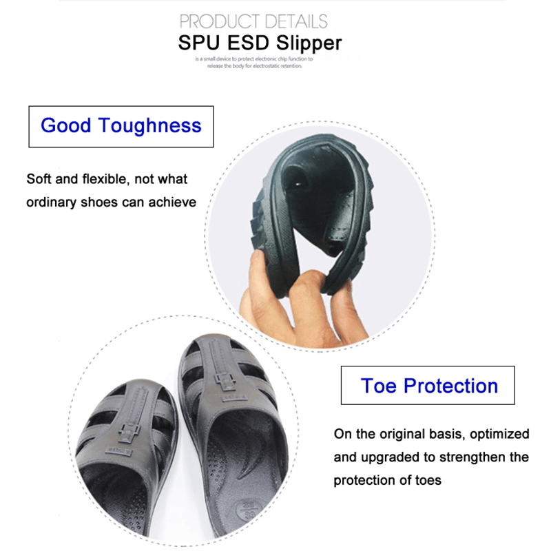 In ambienti di lavoro come la produzione di apparecchiature elettroniche, il montaggio e la manutenzione, la scarica elettrostatica (ESD) può causare gravi danni a dispositivi sensibili come componenti elettronici e circuiti. Le pantofole ESD anti-statiche sono progettate per prevenire la generazione e il rilascio di elettricità statica dal corpo umano e direttamente l'elettricità statica a terra, evitando così la potenziale minaccia di elettricità statica alle apparecchiature elettroniche. Questa misura protettiva può proteggere efficacemente i componenti elettronici di alto valore e ridurre i danni alle attrezzature e le interruzioni della produzione causate da scarico elettrostatico.
