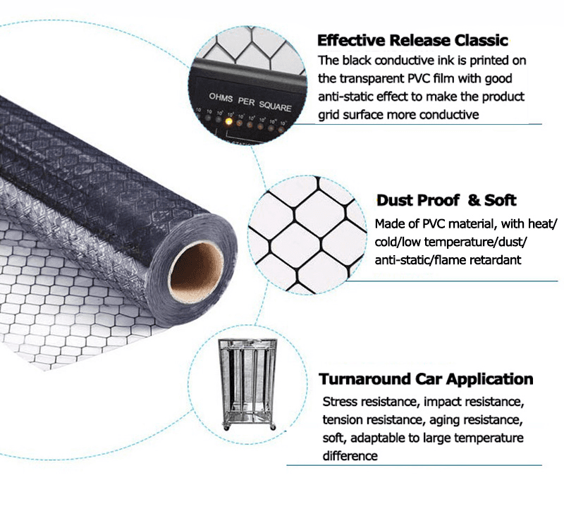 - Performance conduttiva: l'inchiostro conduttivo nero è stampato sul film in PVC per formare una struttura a griglia, che garantisce un'eccellente performance conduttiva.